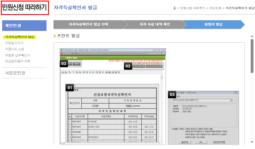 프린터가 없을 때 건강보험자격득실확인서 발급 방법