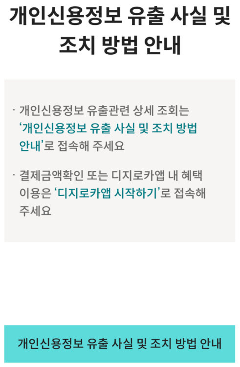 - 카드 재발급: 카드번호·CVC까지 유출된 고객은 반드시 재발급 권장 (연회비 면제)