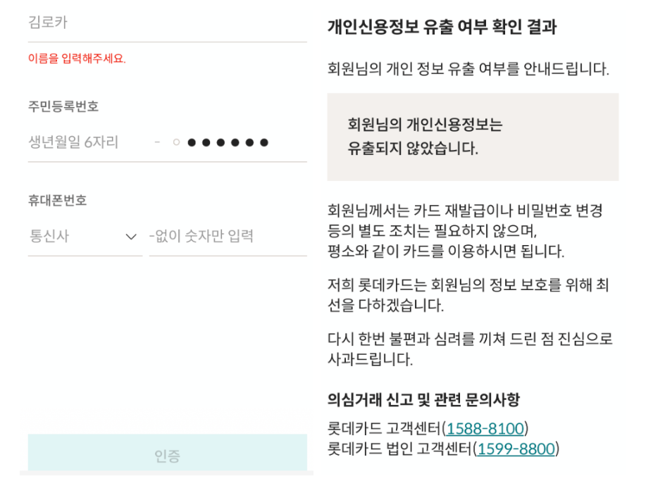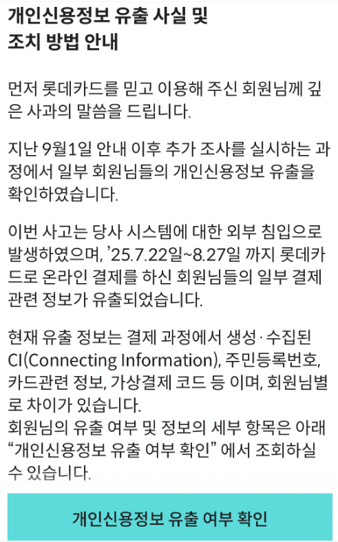 👉 지금 당장 롯데카드 앱 또는 홈페이지에서 내 정보 유출 여부를 확인하세요.