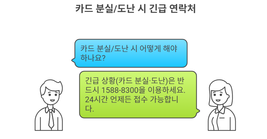 👉 긴급 상황(카드 분실·도난)은 반드시 1588-8300을 이용하세요. 24시간 언제든 접수 가능합니다.