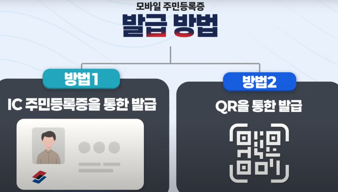 모바일 주민등록증은 대면 발급(주민센터 QR 방식)과 비대면/대면(IC주민등록증 태깅 방식) 두 가지 방법으로 발급받을 수 있습니다.