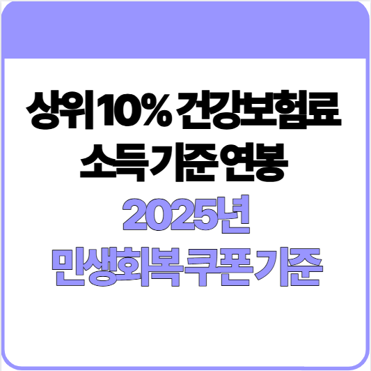 2025년 기준 상위 10% 소득자 연봉 및 건강보험료 기준은 얼마일까? 1인/3인 가구 연봉 기준, 건보료 본인 부담액, 민생회복 소비쿠폰 지급 제외 기준까지 최신 정보를 한눈에 정리했습니다.