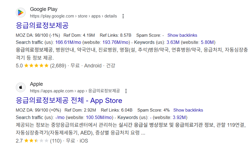 - 위치 기반으로 가까운 병원·응급실·약국 검색 가능