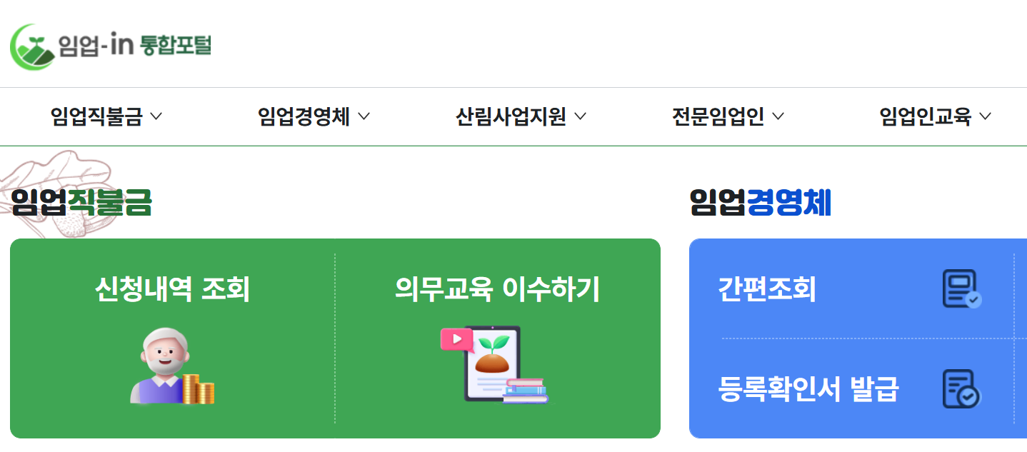 | 임업경영체 증명서 | 임업-in 통합포털 (foco.go.kr), 지방산림청 또는 국유림관리소, 주민센터 | 산림청 업무관과 협의 필요 |