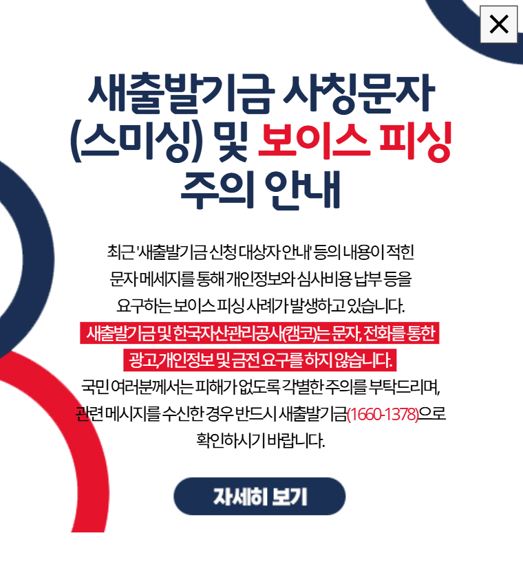 - 보이스피싱 주의: 공식 콜센터(1660-1378) 외 연락은 모두 의심
