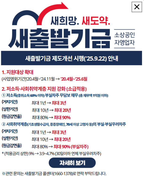 새출발기금은 단순한 연장 제도가 아니라, 실질적인 원금 감면과 금리 조정을 통해 소상공인·자영업자의 재기를 돕는 제도입니다.