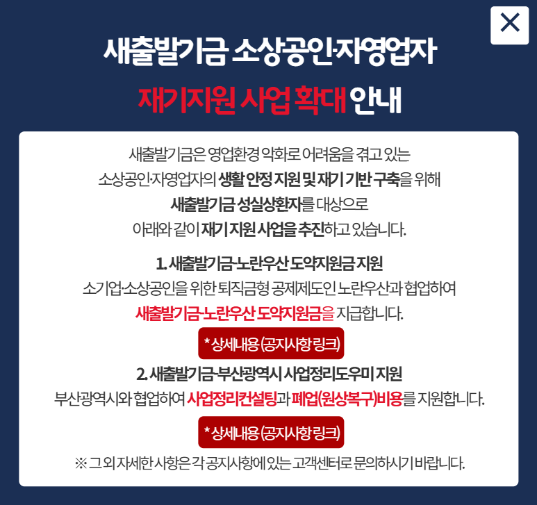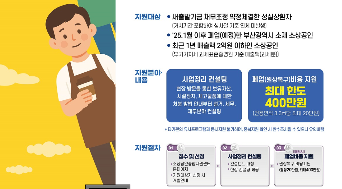 - 취지: 폐업·파산 전에 다시 일어설 수 있는 발판 마련