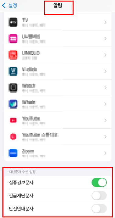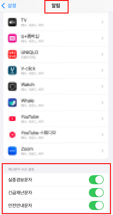 ※ 단, 대통령 경보처럼 국가 필수 알림은 차단이 불가능합니다.