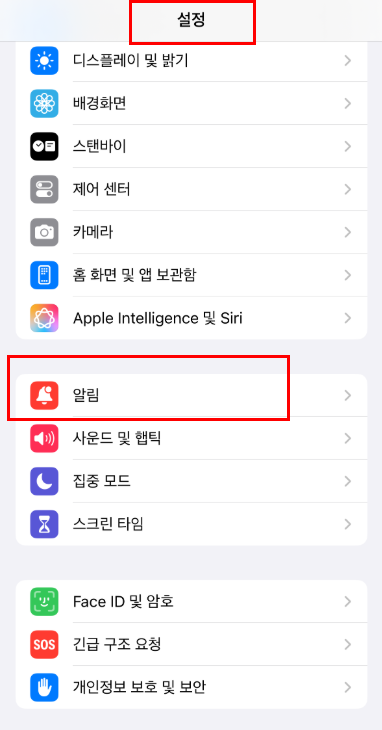 아이폰은 iOS 14 이상 기준으로 설정 → 알림 → 정부 알림 메뉴에서 조정 가능합니다.