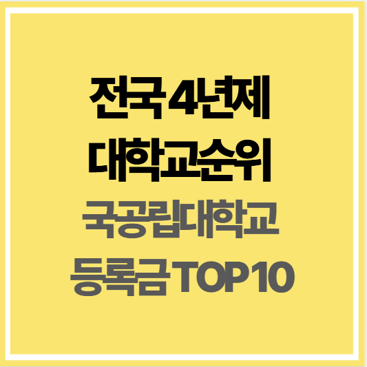 전국 4년제대학교 순위와 국공립대학교 등록금 TOP 10 총정리. 서울대, 연세대, 고려대 등 상위권 대학 비교와 사립·국공립 등록금 차이까지 확인하세요.