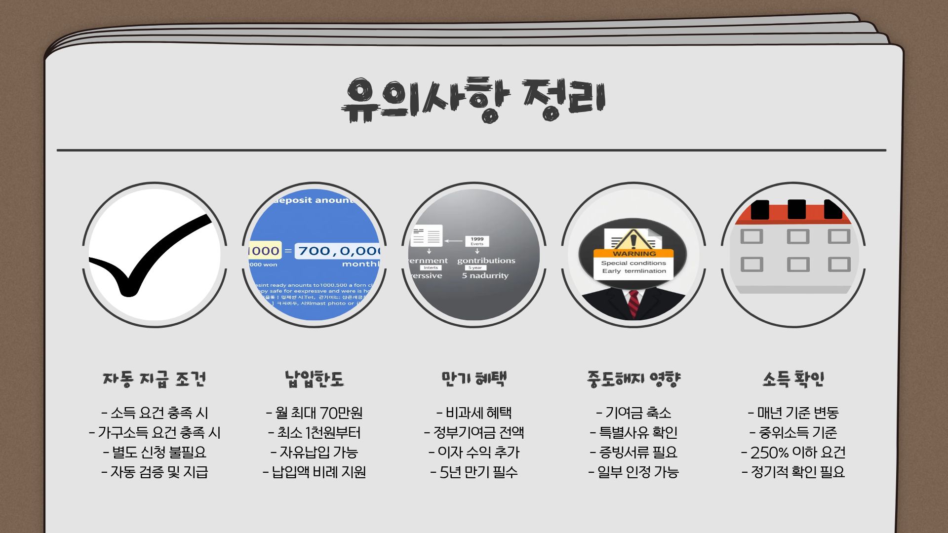 | 주의사항 | 중도해지 시 정부기여금 미지급 또는 환수 가능 |
