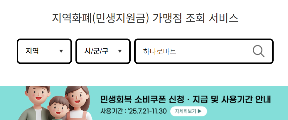 - 카드사 앱(신한·KB·하나) → ‘민생회복 소비쿠폰’ → 가맹점 검색