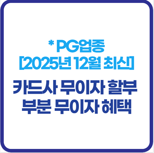 이번 포스팅에서는 2025년 12월 카드사별 무이자·부분 무이자 할부 혜택과 함께, PG업종이란 무엇인지까지 누구나 이해하기 쉽게 정리해드리겠습니다.