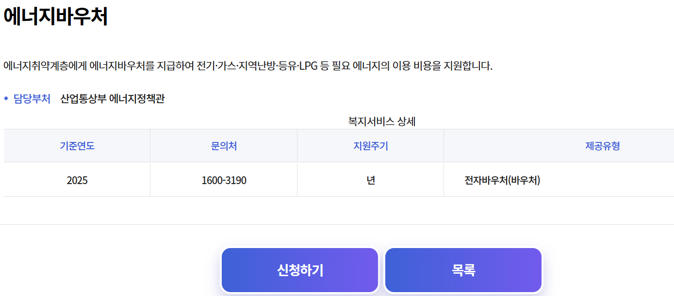 | 지원 항목 | 하절기: 전기요금 / 동절기: 다양한 연료 중 택1 |
