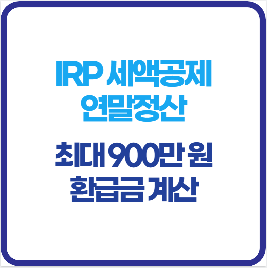 - 핵심: 연금저축에 600만원을 채웠다면, IRP에 추가로 300만원을 납입해야 총 900만원의 최대 공제 혜택을 받을 수 있습니다.