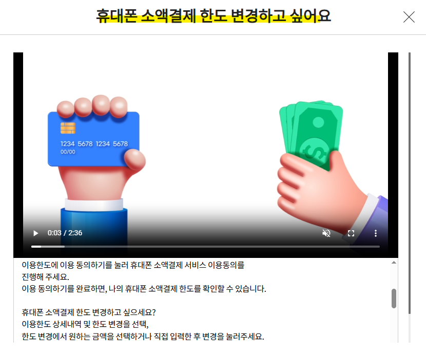 소액결제를 완전히 막기보다는 필요한 경우에만 사용하고 싶다면, 한도를 최소한으로 설정하는 것이 가장 좋은 방법입니다.