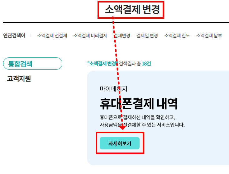 - 마이페이지 → 요금/서비스 → 소액결제 내역 메뉴로 들어갑니다.